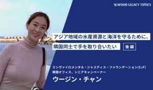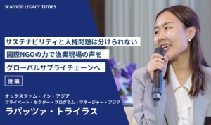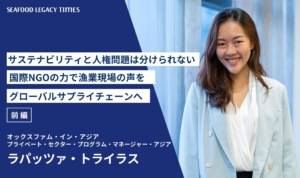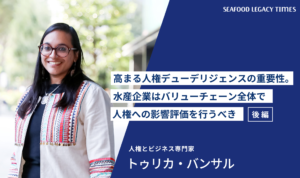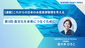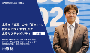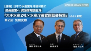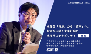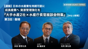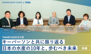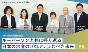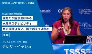Part 2では、海の現状を知ってもらうためのパビリオンでの具体的な取り組みや、更家さんのその他の活動、TSSSが掲げる「2030年までにサステナブル・シーフードを主流に」を実現するためのヒントなどについて語り合います。