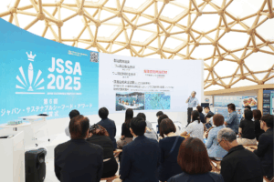 その更家さんが、パビリオンに込めた思いとは。現地を訪れた株式会社シーフードレガシー 代表取締役社長 花岡和佳男がお話を伺います。